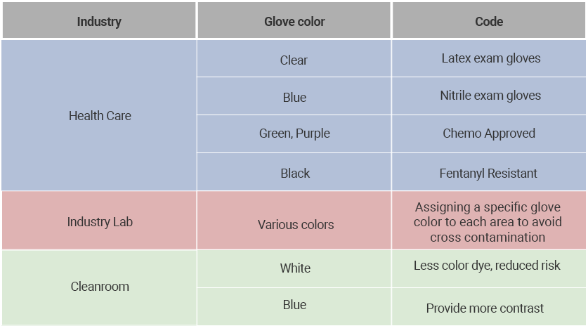 Glove Color: You may choose to color code by material to quickly identify latex versus nitrile or by department to avoid contamination.