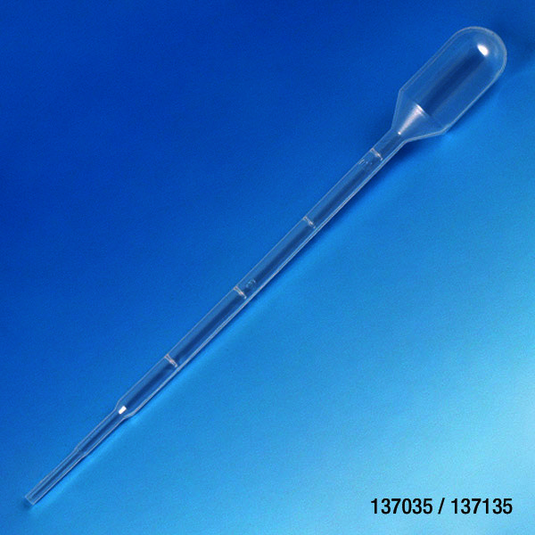 Globe Scientific 137035 Transfer Pipets, Graduated, 3 mL, 2.2 mL Bulb Draw, 140 mm length - 500/Pack